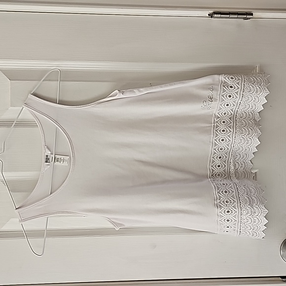White Guess tank/crop top Kids Size 14 Crochet hem with GUESS in Silver
