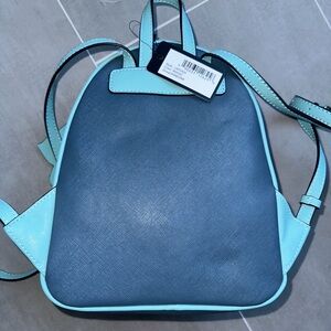 guess backpack in teal and light blue. Ideal for daily wear. Compact and stylish design