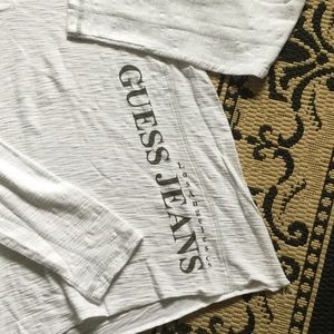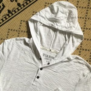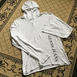 Great Bathing Suit Cover-Up! White with Gray GUESS JEANS Los Angeles CA AND Top Stitching. Hood and Snap Neck, Long Sleeves. Size Large Unisex🎉FINAL PRICE🎉