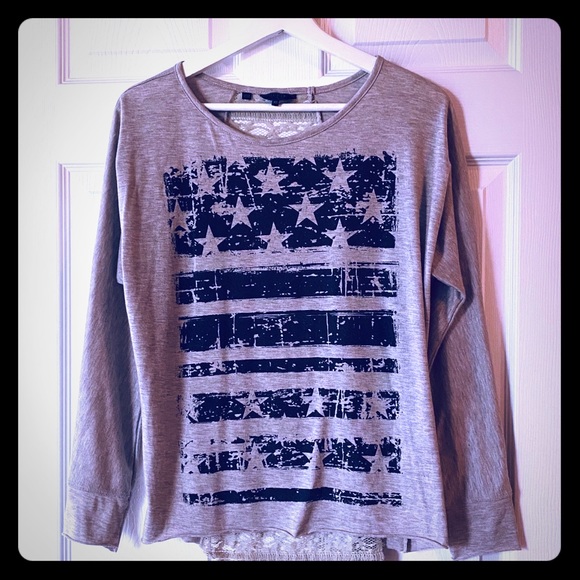 3/4 sleeves Cute star/flag print Lace detail back Size XS **BUNDLE and SAVE!**