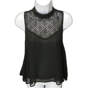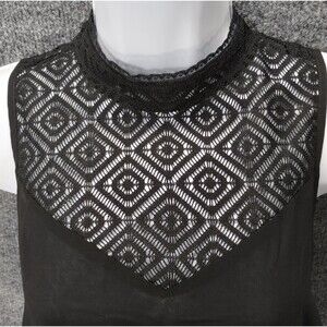 GUESS Top Women's S Black Chiffon Lace High Neck Back Button Lined Dainty NWT