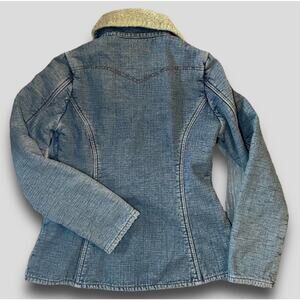 GUESS VINTAGE DISTRESSED DENIM JACKET SHERPA BARN TRUCKER MEDIUM WASH SMALL