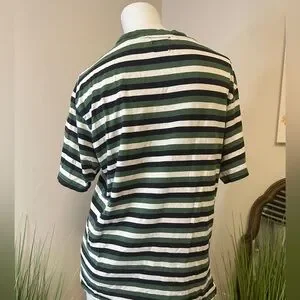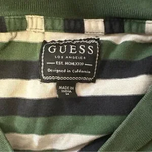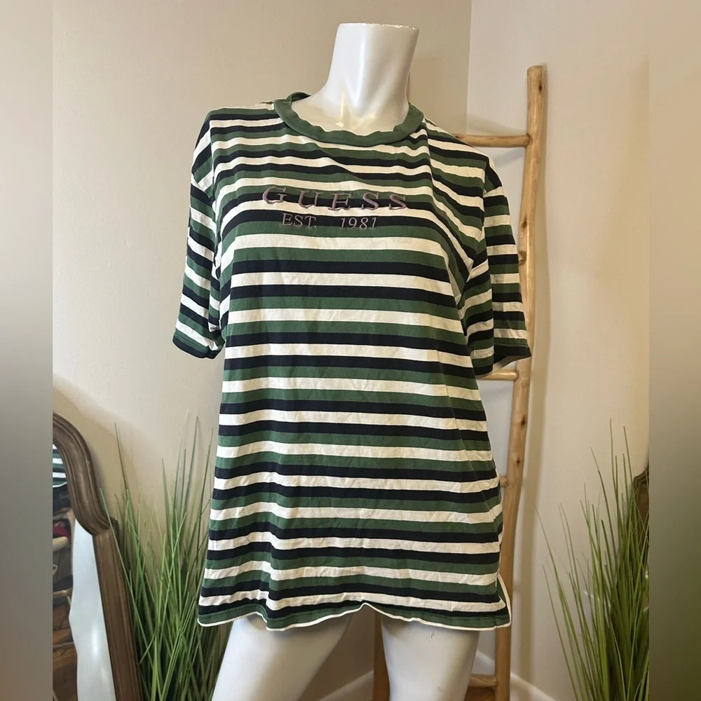 GUESS VINTAGE Y2K Medium Green White Striped T-Shirt