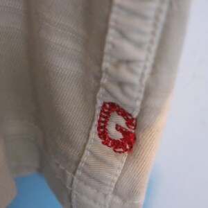 GUESS Vintage Polo Shirt Size M Men's Distressed Streetwear Tan Stripes Logo