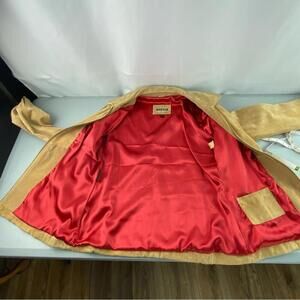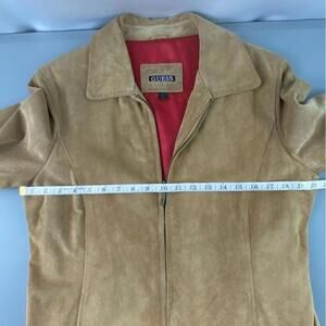 GUESS Vintage Y2K Camel Tan Suede Zippered Jacket Red Lining