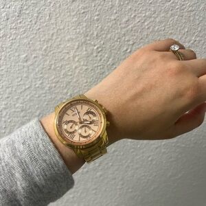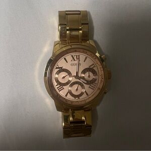 Guess Watch I bought some years ago. Needs a new battery. Has some very minor scratches from use. Originally $100, selling for $35 OBO. The first pictures are not the correct color. Watch has the rose gold color on the inside. I had it adjusted to fit my small wrist, but can be made bigger, I still have the extension.