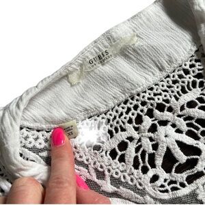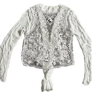 GUESS WHITE LONG SLEEVE LIGHTWEIGHT CARDIGAN WITH OPEN LACE/MESH BACK SIZE XS