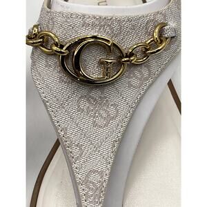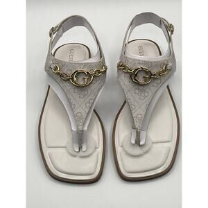 GUESS WOMENS RISSY T STRAP LOGO GOLD HARDWARE SANDAL IVORY SIZE 11M