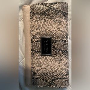 Leather GUESS wallet. Used once practically new. Beige with snake leather print.