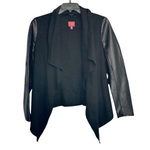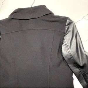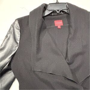 GUESS | Waterfall Women’s Open Front PU Leather Sleeves Wool Jacket M