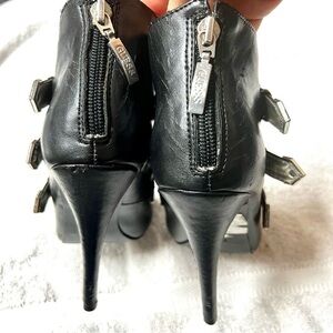 GUESS WgStella2 Y2K black leather buckle heeled booties size 5.5