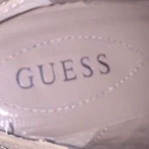 New without box Guess suede booties with 5” heel in tan from pet-free/smoke-free home. Hidden platform.