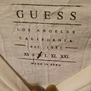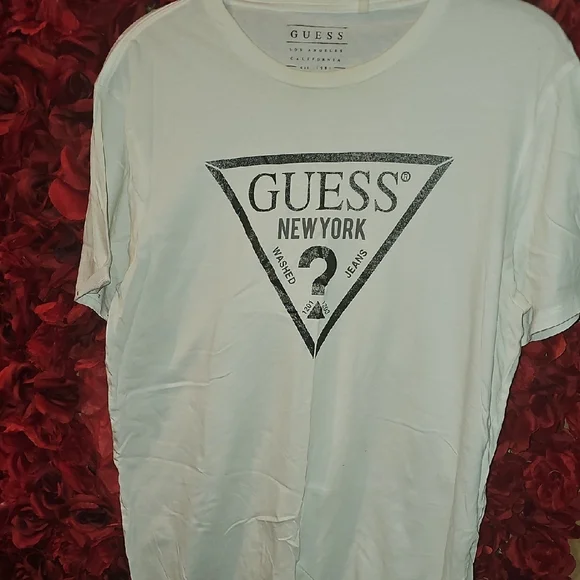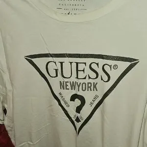 Stylish GUESS tee with iconic logo. Soft fabric. Ideal for casual wear.
