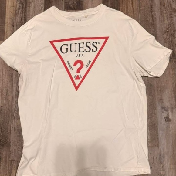 GUESS White Tee with Red Triangle Logo