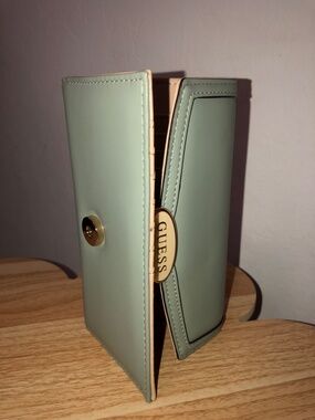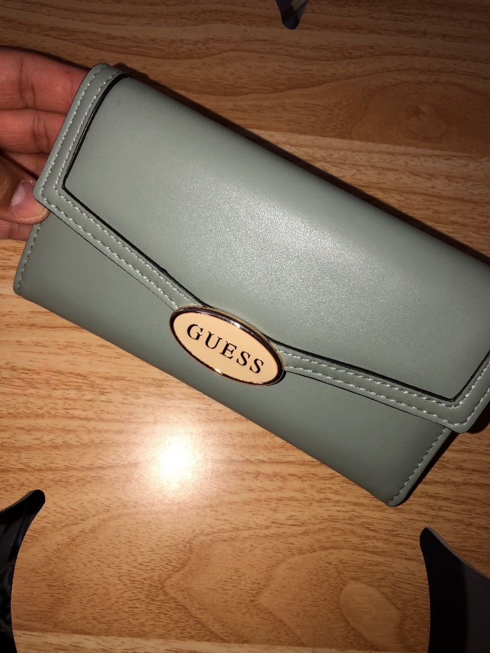 This GUESS wallet is in great condition! I have only used it a couple times. It’s such a beautiful sage green color and it’s super spacious! It does not come with tags. Super stylish and practical…