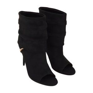 Step into style with the GUESS Women's ADILEE Ankle Boot in Black Suede. These chic ankle boots boast a captivating design, featuring chain hardware and scrunched ankle detailing, perfect for transitioning through seasons. The peep toe adds a touch of allure, and the pull-on closure ensures easy wear. Whether you're heading to a casual outing or a night on the town, these boots effortlessly elevate your look with their modern and sophisticated flair.