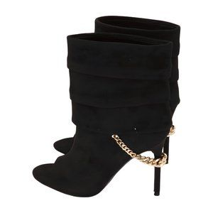 * Eye-catching design with chain hardware and scrunched ankle detailing