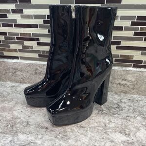 GUESS Womens Black 1-1/2" Platform Byra Square Toe Block Heel Booties 8 M NIB