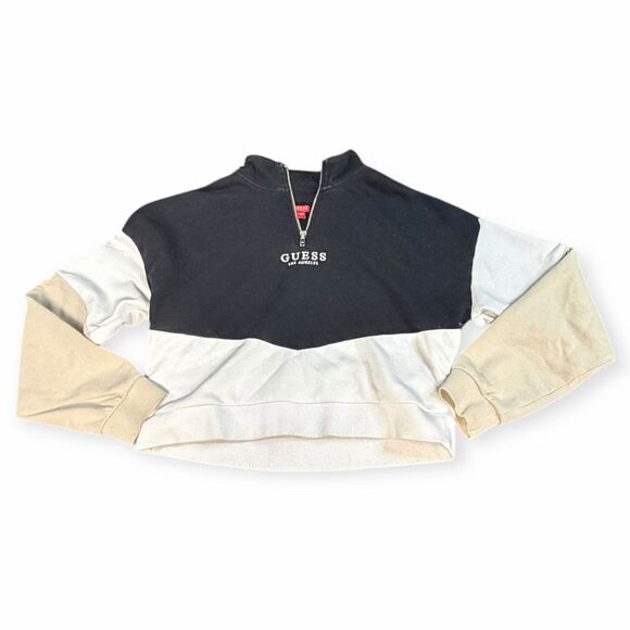 GUESS Women’s Black Cream Beige Long Sleeve Quarter Zip Sweatshirt Size Large.