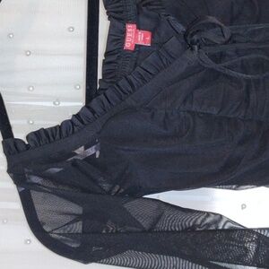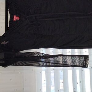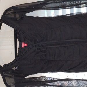 GUESS Womens Black Mesh Corset Tie Up, Long Sleeve Dress, Size: L