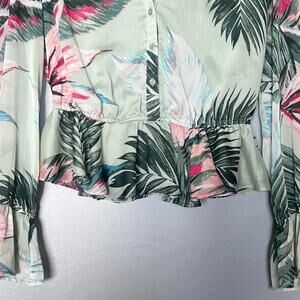 GUESS Women’s Blouse Size S Green hawaiian print Floral Long Sleeve sheer Top
