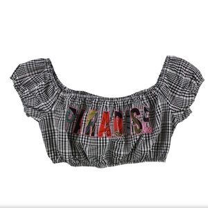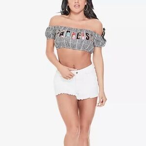GUESS Womens Checkered Strapless Crop Top Blouse, worn only once, like new.
