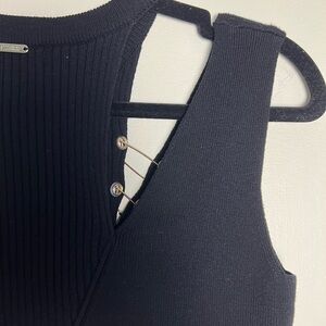 GUESS Womens Clarita Safety-Pin Cutout Sweater $79 Black Ribbed Knit Peplum XS