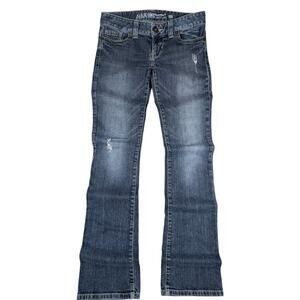 GUESS Women's Daredevil Bootcut Med Wash Distressed Denim Jeans Size 27 Y2K 90s