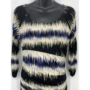 GUESS Womens Dress Size Medium Black Ivory Stripe 3/4 Sleeve Ruched Scoop Sheath