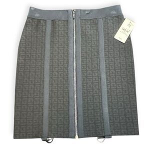 GUESS Women’s Jet Black Multi Logo Mirage Garter Mini Skirt Size Medium NWT
