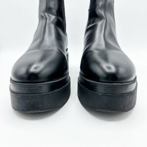 GUESS Women's Keanna Knit Detail Pull-On Lug Sole Faux Leather Chelsea Boots 8.5