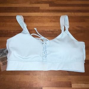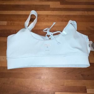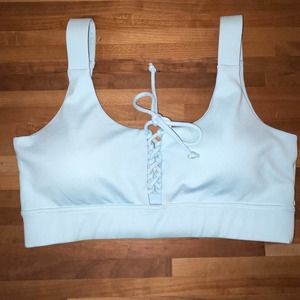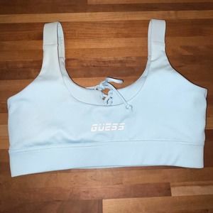 GUESS Women's Lace Up Active Sports Bra Blue small