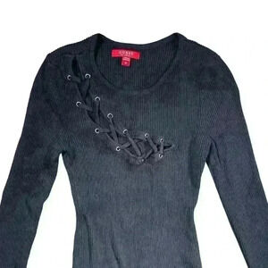 GUESS Women's MINA Sweater String Tie Frontal Size M Jet Black