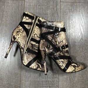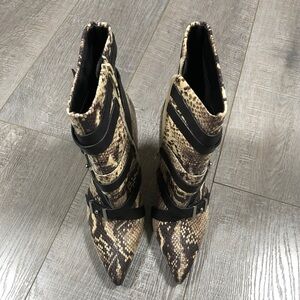 GUESS Women’s Parley Snake Printed Pointed Toe Heeled Leather boots Size 7 ½ M