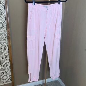 GUESS Women's Pink Tencel Cuffed Ankle Zip Leg Bowie Cargo Chino Pants Size 27