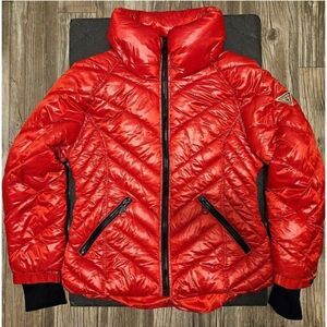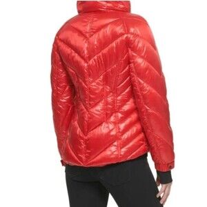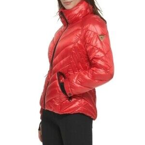 GUESS Women's Quilted Red Chevron Packable Zip Puffer Jacket Coat 22QMP180, Sz M