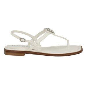 GUESS Women's Rainey Logo Sqaure Toe T-Strap Flat Sandals, Size 5M