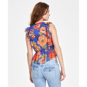 GUESS Women's Rossella Printed Ruffled Top Blue Size M MSRP $89
