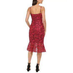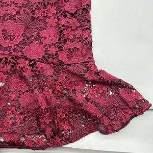 GUESS Women's Size 8 Pink Floral Lace Sleeveless Flounce-Hem Midi Dress NWT