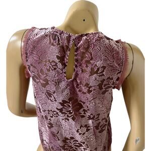 GUESS Womens Size XXS Sheer Sleeveless Mauve Velvet Trim Fringed Tank Top Shirt