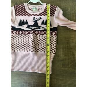 GUESS Women's Small Pink Vintage Christmas Sequin Reindeer Sweater Knit Cotton