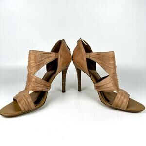 GUESS Women’s Strappy High Heel Sandals Tan Leather Open Toe Pumps Size 7.5