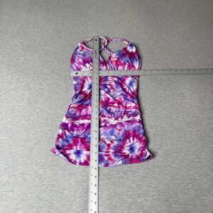 GUESS Women’s Tie-Dye Open Back Knotted Racerback Padded Plunge Top