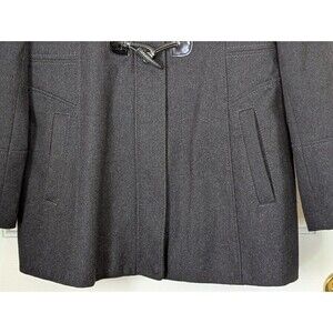 GUESS Wool Blend Pea Coat Womens Large Charcoal Black Full Zip Toggle Buttons