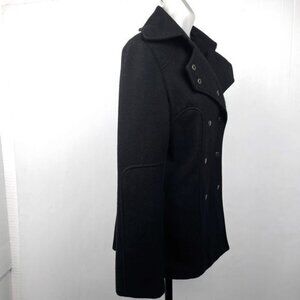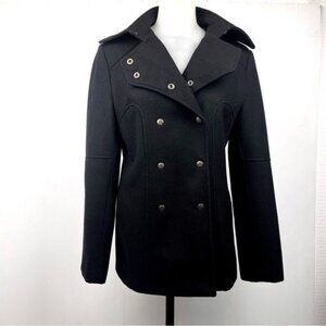 GUESS Wool Blend Snap Front Pea Coat Black Small