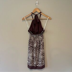 GUESS Y2K 90s Brown & Cream Giraffe Print Halter Dress Size Small
