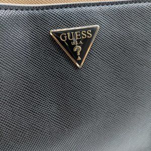 GUESS Ynes Girlfriend saffiano faux-leather satchel bag purse -BLACK/TAN