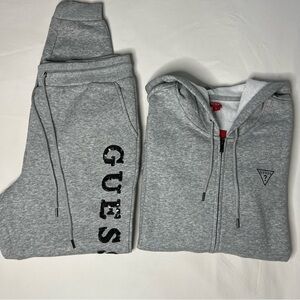 GUESS Zip-up Hooded Sweatshirt Large & Jogger Sweatpants Medium Light Heather