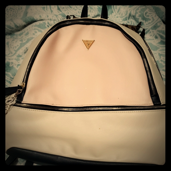 Cream color GUESS backpack with 3 pockets. New never used with tags