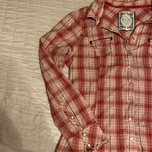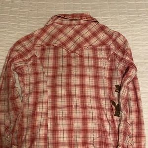 GUESS plaid button down SIZE XL Floral detail on sides of shirt In great condition!!!